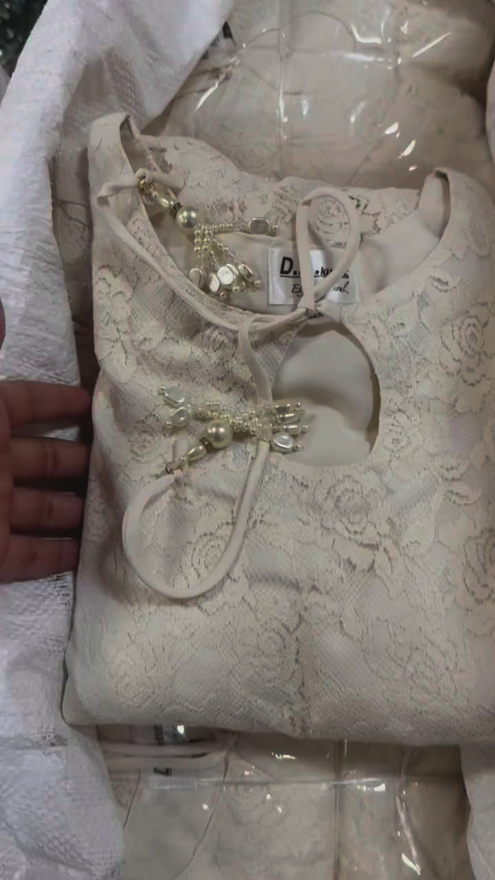 This elegant (Alem) Croatia set features a beautiful cut work top made of inner lycra for comfort. The lovely tassels on the neck line add a touch of charm. Perfect for a sophisticated and stylish look.