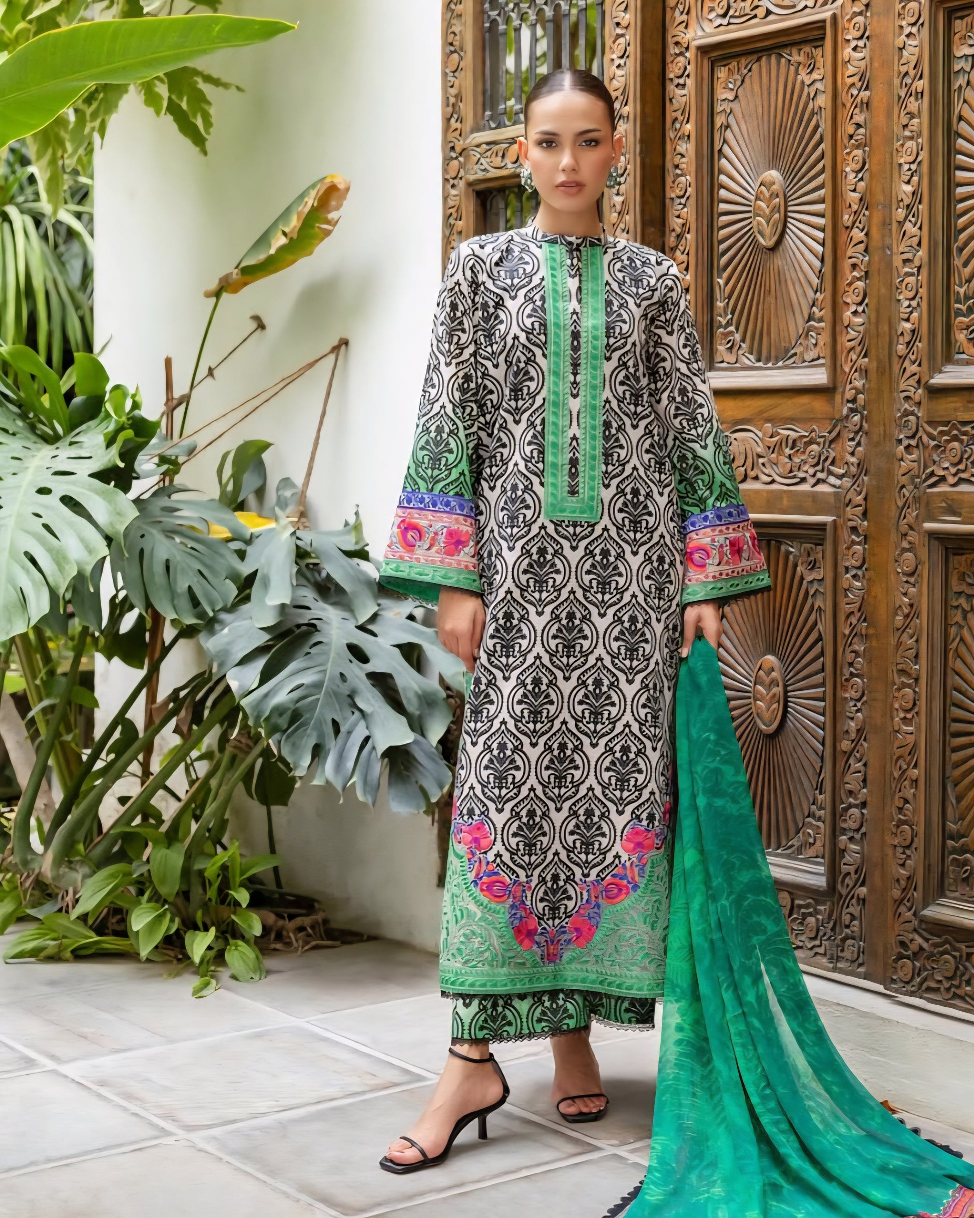 Introducing the beautifull 3pcs! Made from BUTTER LIKE AMERICAN CRAPE fabric, this set includes a beautiful top, bottom, and dupatta. Perfect for any occasion, feel confident and comfortable in this stylish set. (No butter included, sorry.)
